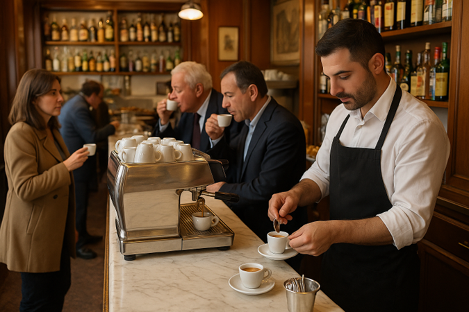Esses bares não são apenas locais de consumo. São parte da história cultural e intelectual da Itália — verdadeiros salões de convivência.