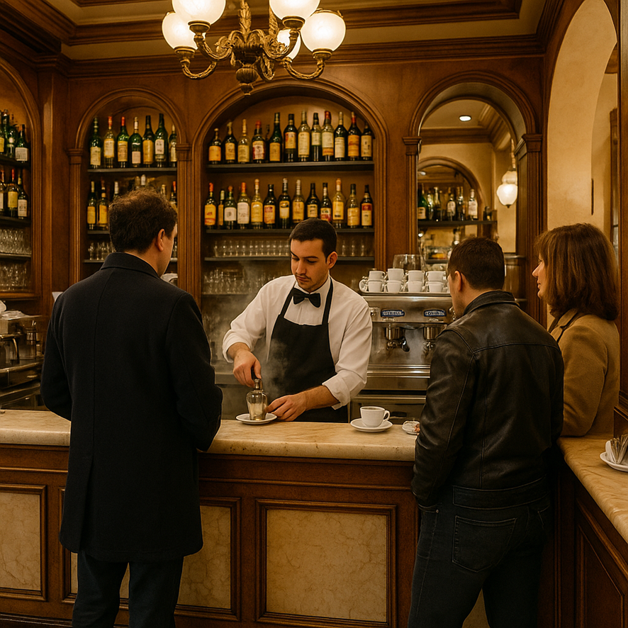 A maioria dos italianos toma seu espresso no balcão, em pé. Isso é mais rápido, mais barato e mais tradicional. Sentar-se à mesa pode duplicar o valor da bebida, especialmente em cidades turísticas.