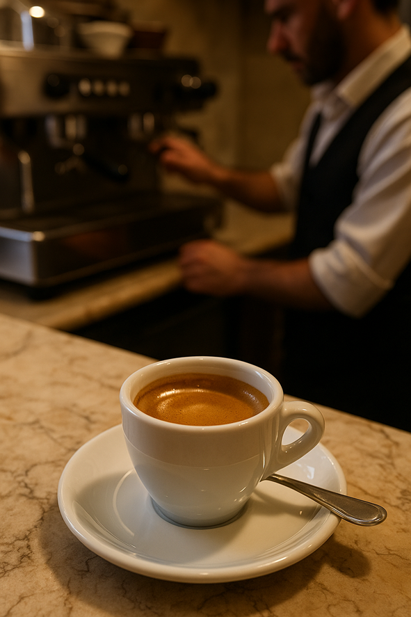 O barista na Itália é um profissional respeitado. Ele não apenas prepara cafés — ele domina uma arte. Sabe regular a moagem, compactar com a pressão correta, extrair no tempo ideal e servir com postura impecável.